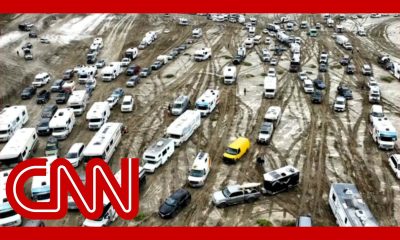 Drone video from CNN Air shows vehicles belonging to Burning Man festival-goers stuck inside the festival grounds in Nevada’s Black Rock Desert after heavy rains swamped...